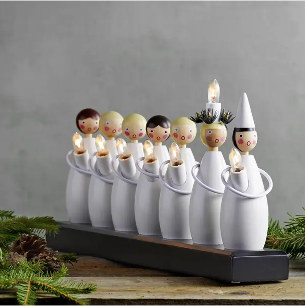 Traditionellt luciatåg utformat som en adventsljusstake tillverkad i trä. Perfekt för att skapa julstämning under advent och Lucia. Passar lika fint i fönstret som på en skänk och blir en stämningsfull detalj i din juldekoration!