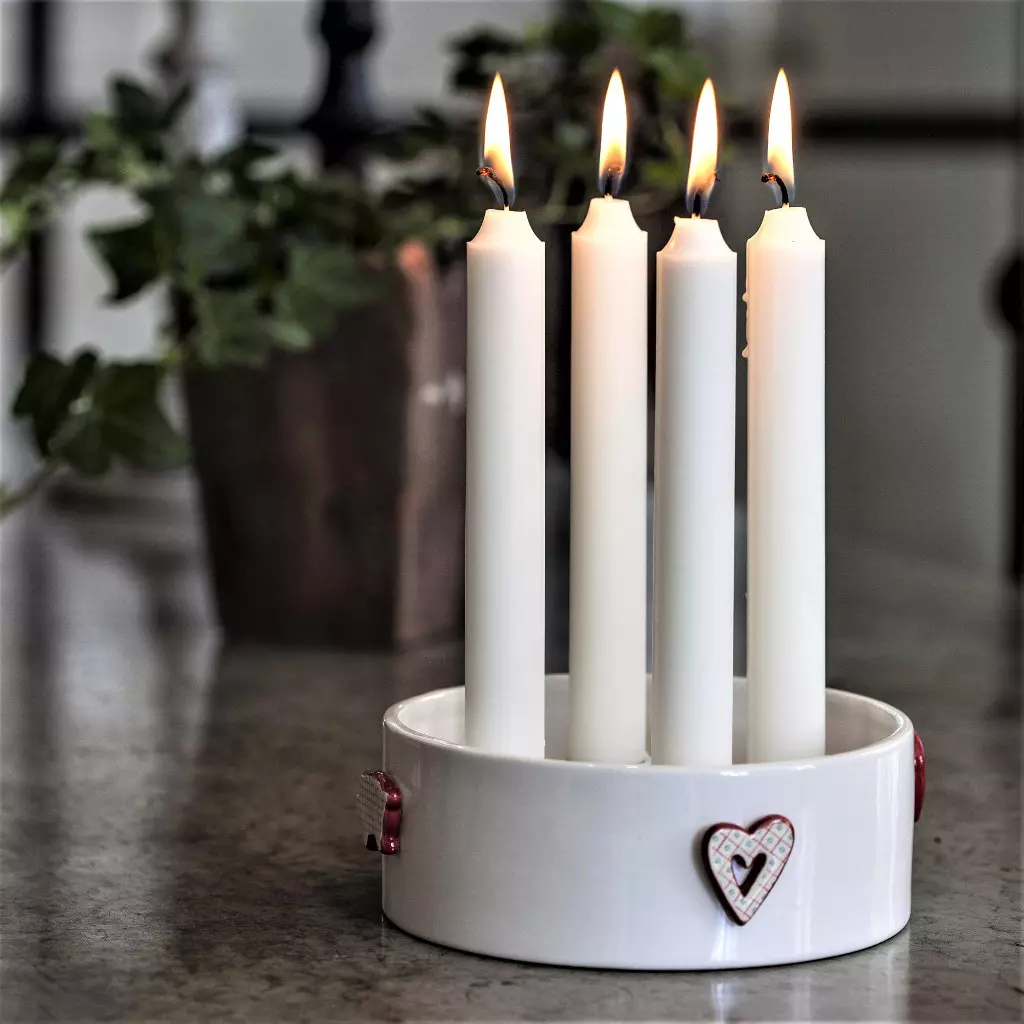 Med denna söta adventsstake dekorerad med Bruse, Hjärtat, Valentin och Malte kommer julkänslan som ett brev på posten. Passar perfekt med lite dekoration i, kottar, mossa, nötter eller varför inte små röda kulor? Bara fantasin sätter gränser här!