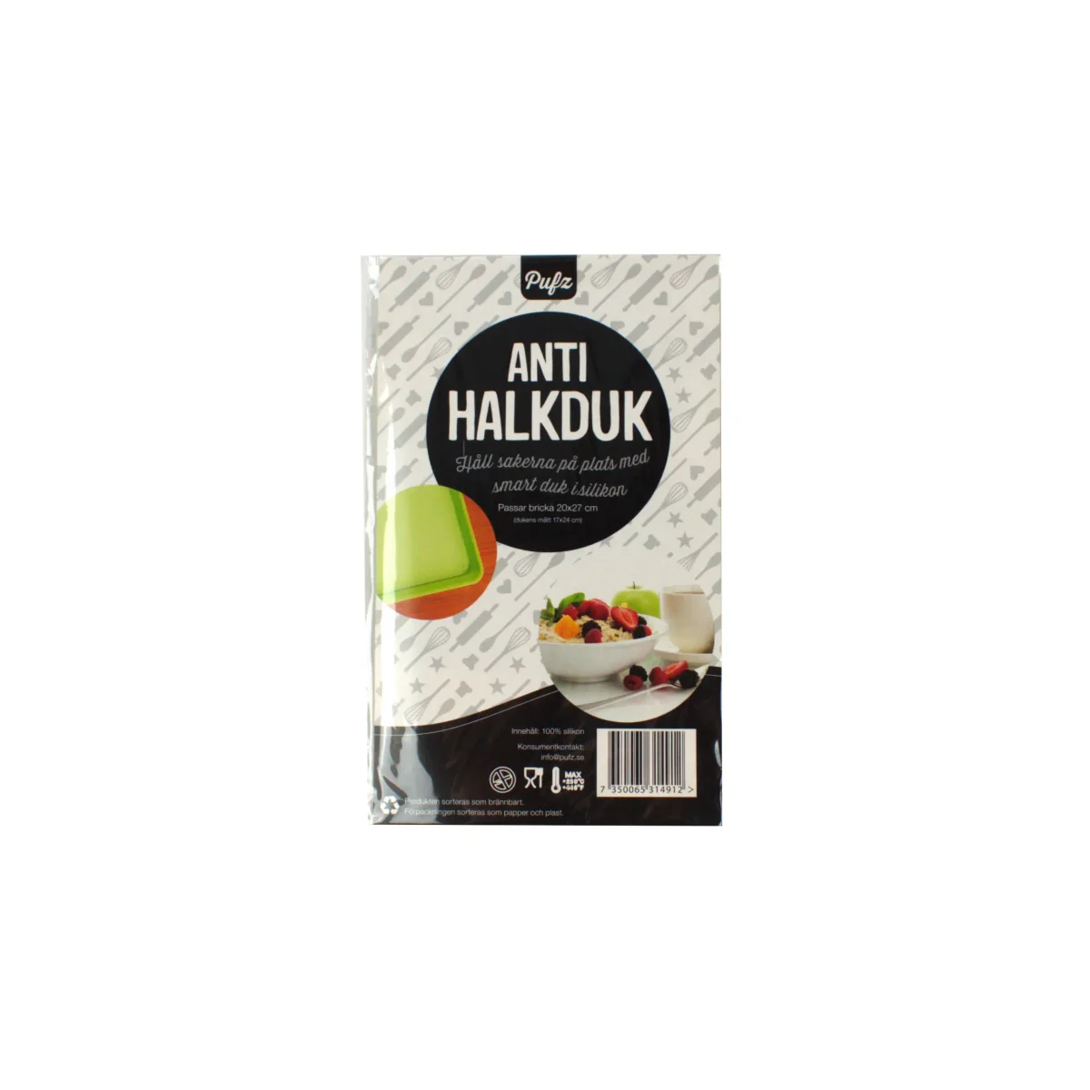 Med antihalkduk från Pufz kommer kaffekoppen på brickan inte välta och den fina brickan kommer fortfarande visas upp! Antihalkduken är i livsmedelsklassad silikon och genomskinlig vilket gör att brickan fortfarande kan glänsa med sitt fina motiv samtidigt som allt på står stadigt tack vare mycket god vidhäftningsförmåga och hög friktion. Efter användning är den lätt att torka av om det skulle behövas och den funkar även att köra i diskmaskin.