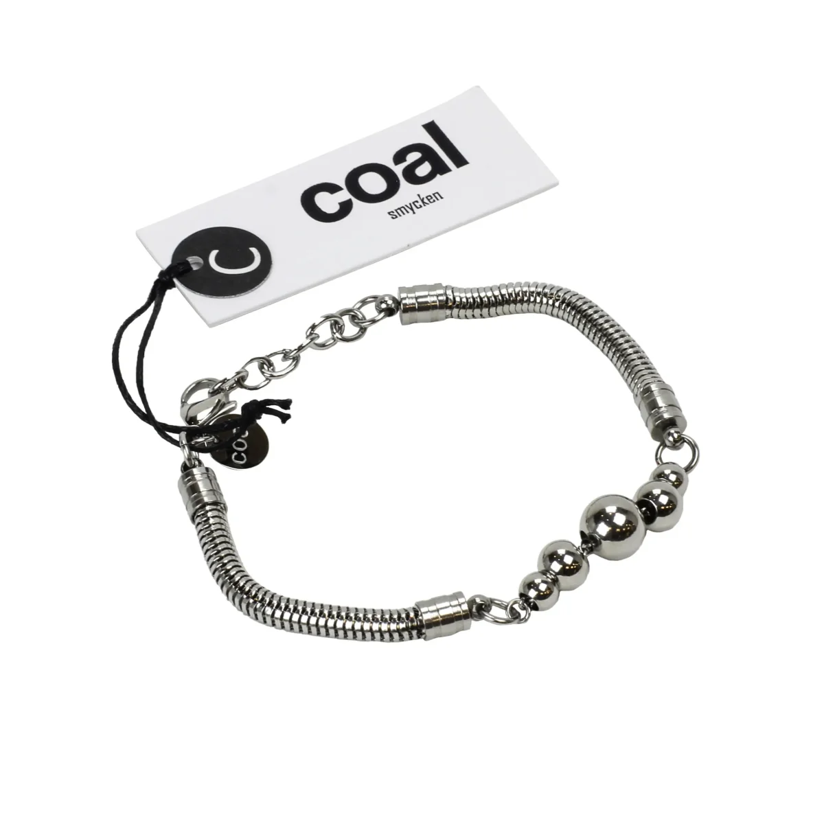 Coal smycken vänder sig mot såväl unga som gamla med sina stilrena och samtidigt lekfulla kollektioner. Materialvalet är oftast hållbart stål som blandas med andra element. Detta silverfärgade armband i stål med justerbar längd passar till alla tillfällen. Material: Stål Färg: Silver Storlek: 18 cm