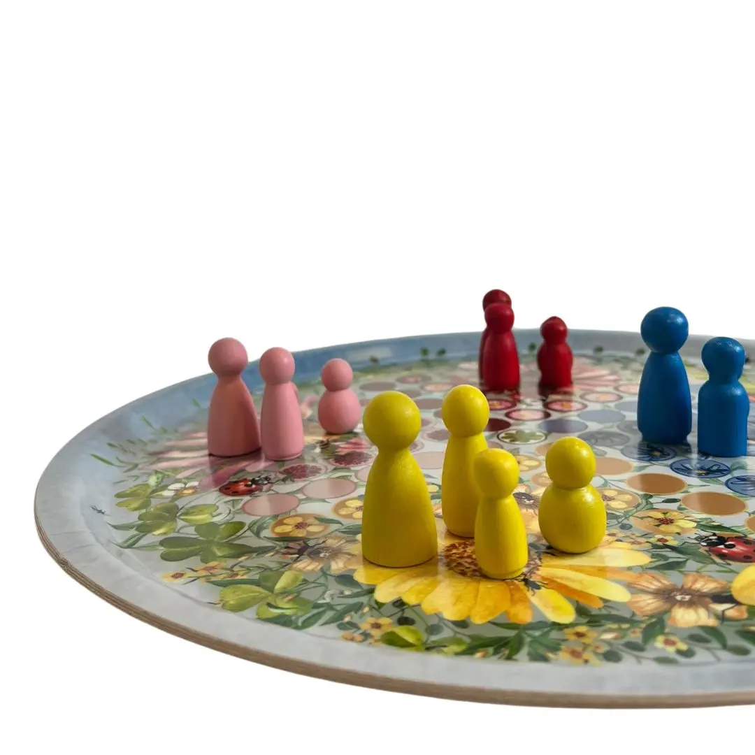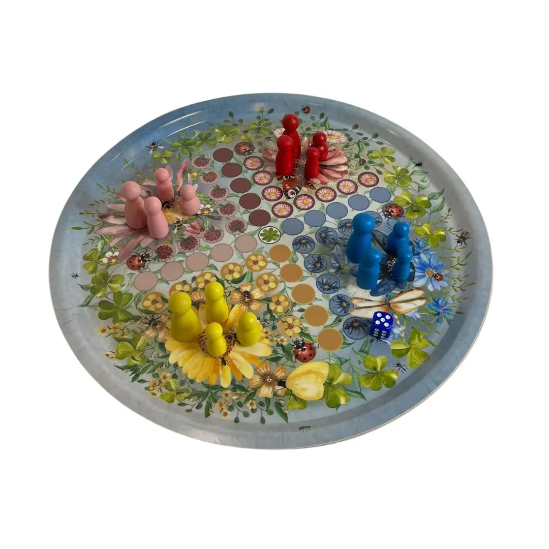 Denna unika bricka på 38 cm i diameter är inte bara en vacker serveringsbricka utan också en spelplan för Fia med Knuff! Med både tärning och spelpjäser inkluderade kan du enkelt växla från servering till spel. Perfekt för att liva upp fikat eller skapa en stunds underhållning vid bordet, en praktisk och rolig detalj för alla åldrar.