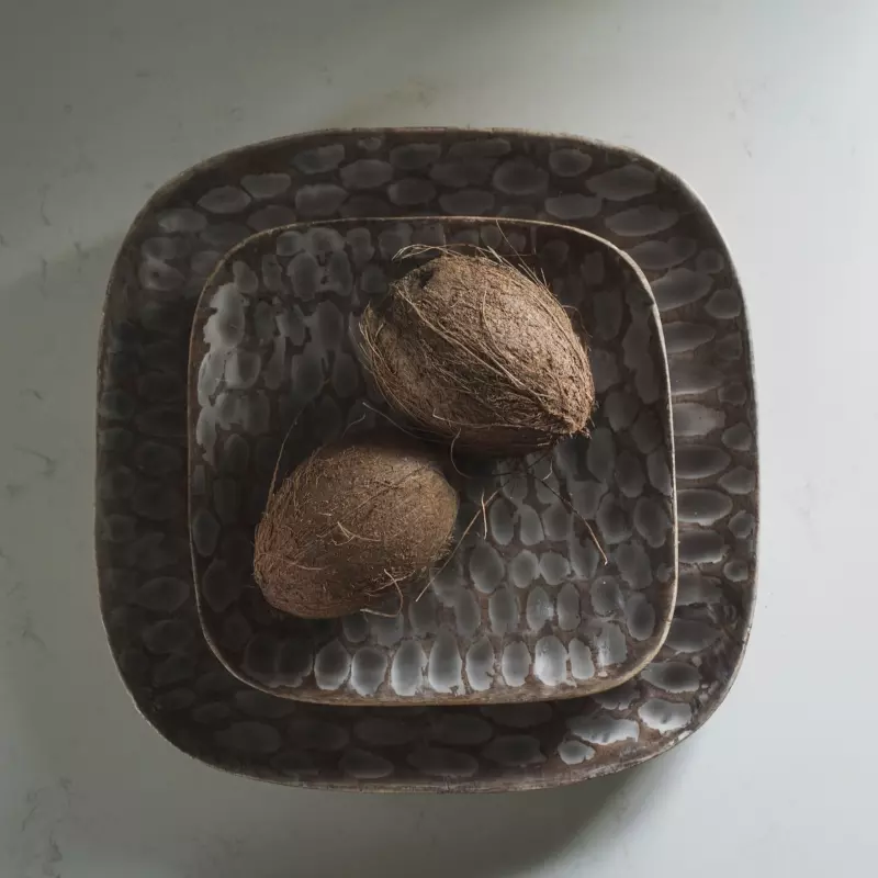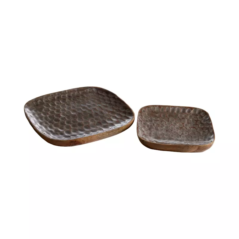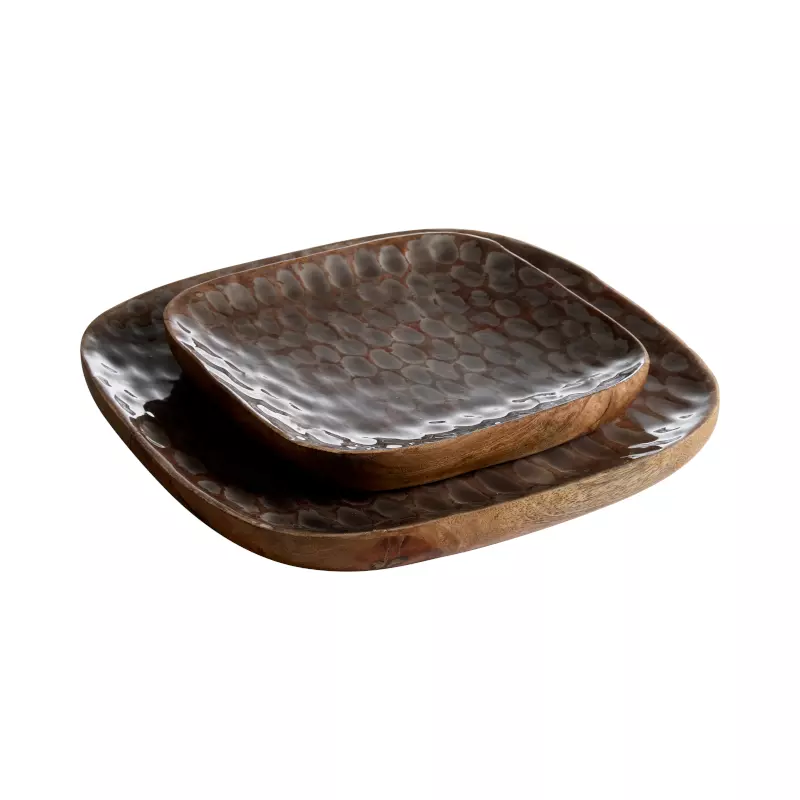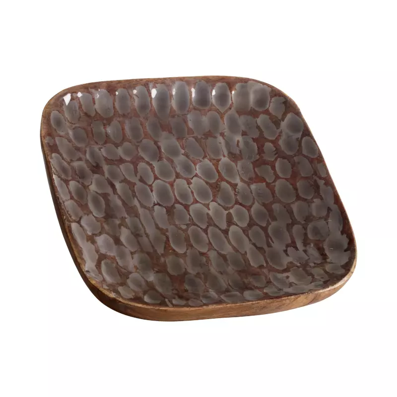 Måns är ett litet fat/bricka. De är handgjort i emaljerat mangoträd med en fantastisk färg av gråbrun. Eftersom dessa brickor är naturliga så är det helt normalt att det finns en viss variation. Letar du efter trendiga och jordnära färger till hemmet så passar Måns utmärkt att placera på vardagsrumsbordet eller i ditt kök! Det är bara din fantasi som sätter gränsen vart du placerar Måns. Godkänd för torr mat. Finns i två olika storlekar. Material: Emaljerat mangoträd Storlek: 25x25x3,5 cm Färg: Trä Läs gärna ner om Mogihome nedan.