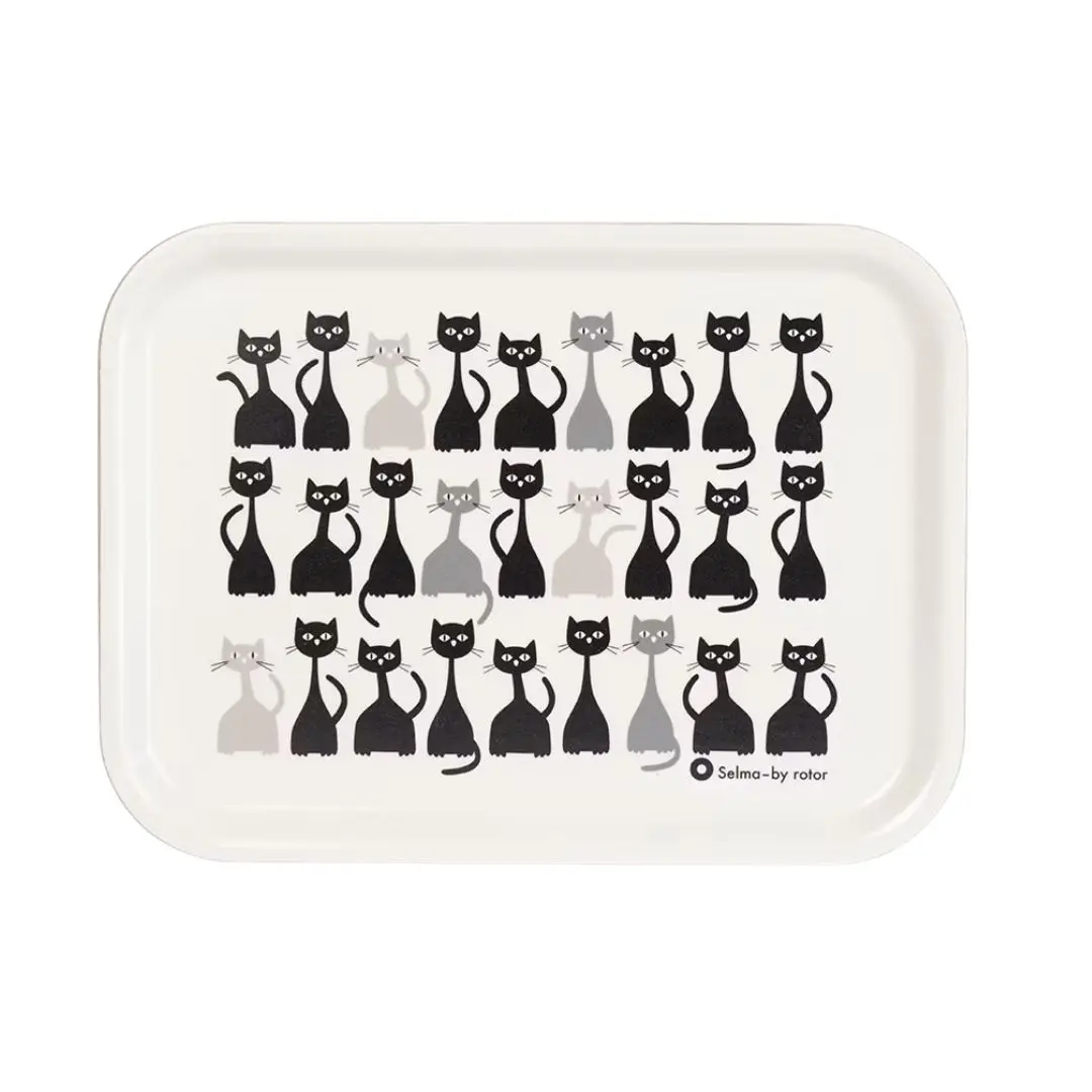 Denna serveringsbricka från Rotor, med det charmiga motivet katten Selma, är en perfekt blandning av funktion och design. Med sitt lekfulla uttryck och gedigna kvalitet blir den snabbt en favorit i hemmet, vare sig du använder den för att servera frukost på sängen, fika i trädgården eller som en dekorativ detalj på köksbänken. Storlek: 20x27cm Material: Laminerad björkfaner Tål diskmaskin