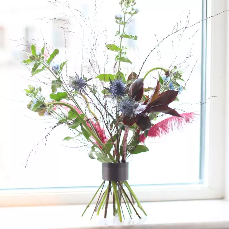 Har du hört något liknande? Det hade inte vi förens vi såg Hanatabas produkter. De kräver inte en vas utan du kan placera din bukett i en skål eller på ett fat med vatten. Följ stegen för en Hanataba ovan men använda ett fat eller en skål istället för en vas. Andra alternativet är blomsterfakir från Hanataba, med den kan du på ett enkelt och roligt sätt skapa ett vackert blomsterarrangemang. Välj några av dina favoritblommor samt någon gren eller kvist från trädgården. Stick ner dem i din blomsterfakir och placera sedan den i en skål eller på ett fat med vatten i. Se där! Nu har du skapat en bukett utan en vas!