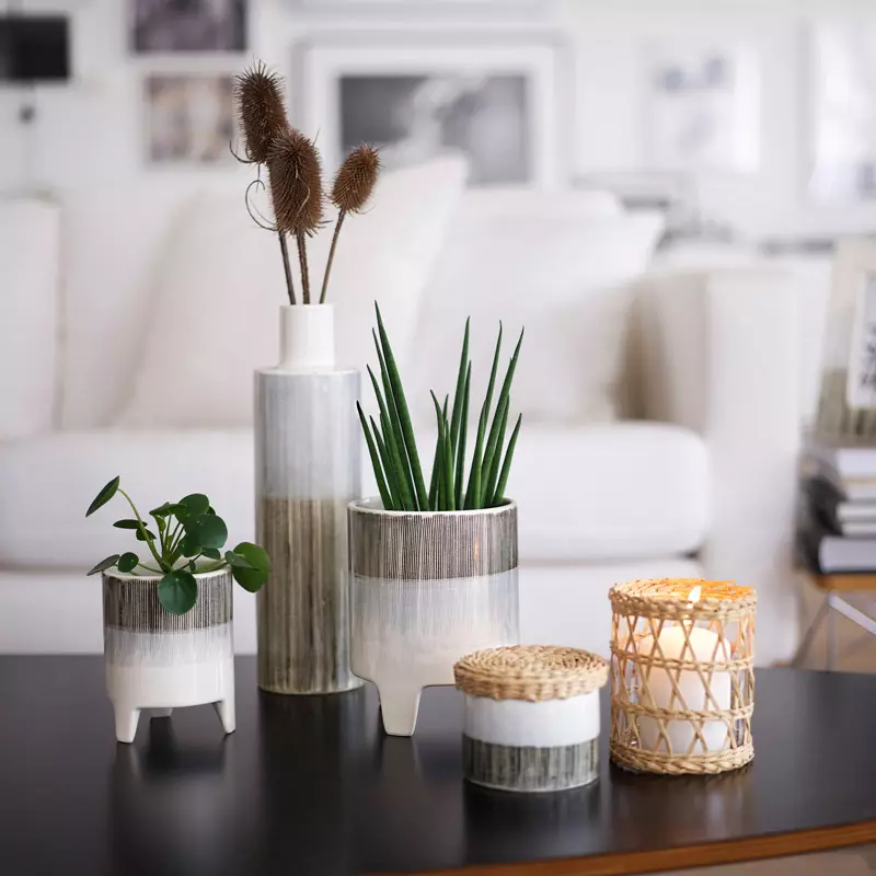 Vi anser att de små detaljerna i hemmet är minst lika viktiga som de stora. Genom att dekorera med ljusstakar, krukor och vaser kan ni skapa en helt ny känsla i rummet och få precis den känslan ni önskar. Ordet Ashi betyder “fötter” på japanska och valdes för denna kollektionen då den med sin eleganta design står stadigt på jorden. Stengodskeramiken har en reaktiv glasyr där mönstereffekten görs för hand. Detta innebär att varje Ashi ni väljer är unik och adderar karaktär till ert hem. Med sina naturnära toner är kollektionen en fröjd för ögat och bidrar till en behaglig känsla i rummet där den placeras.