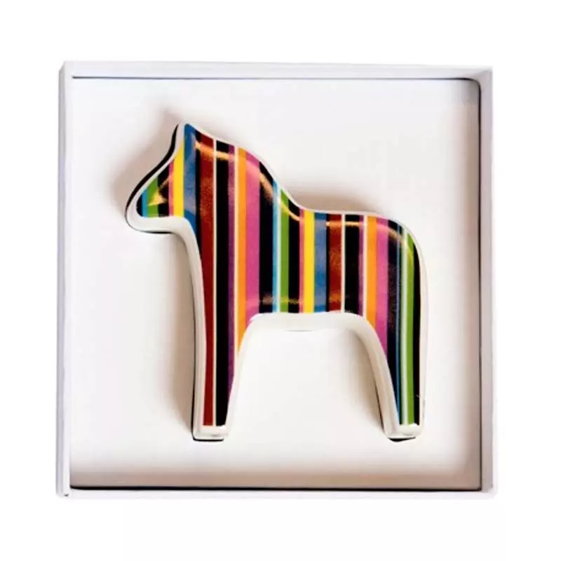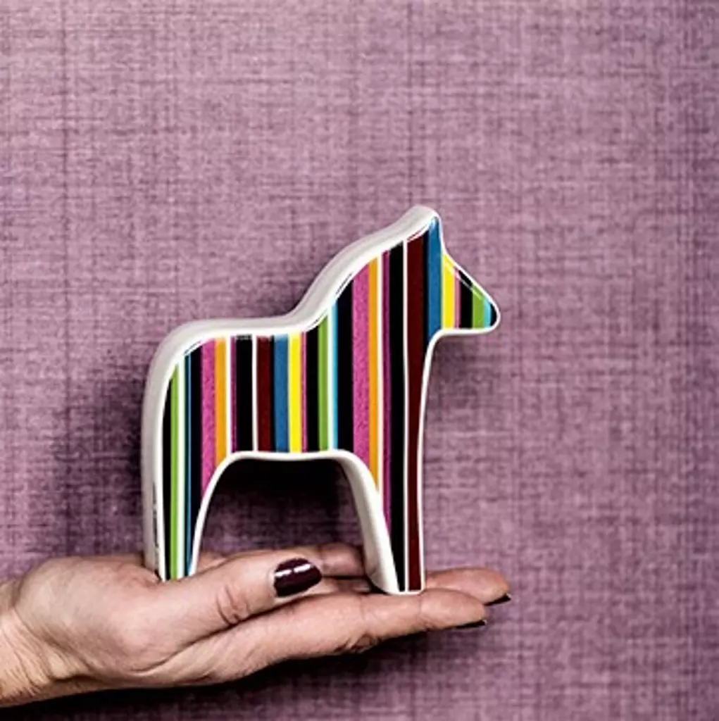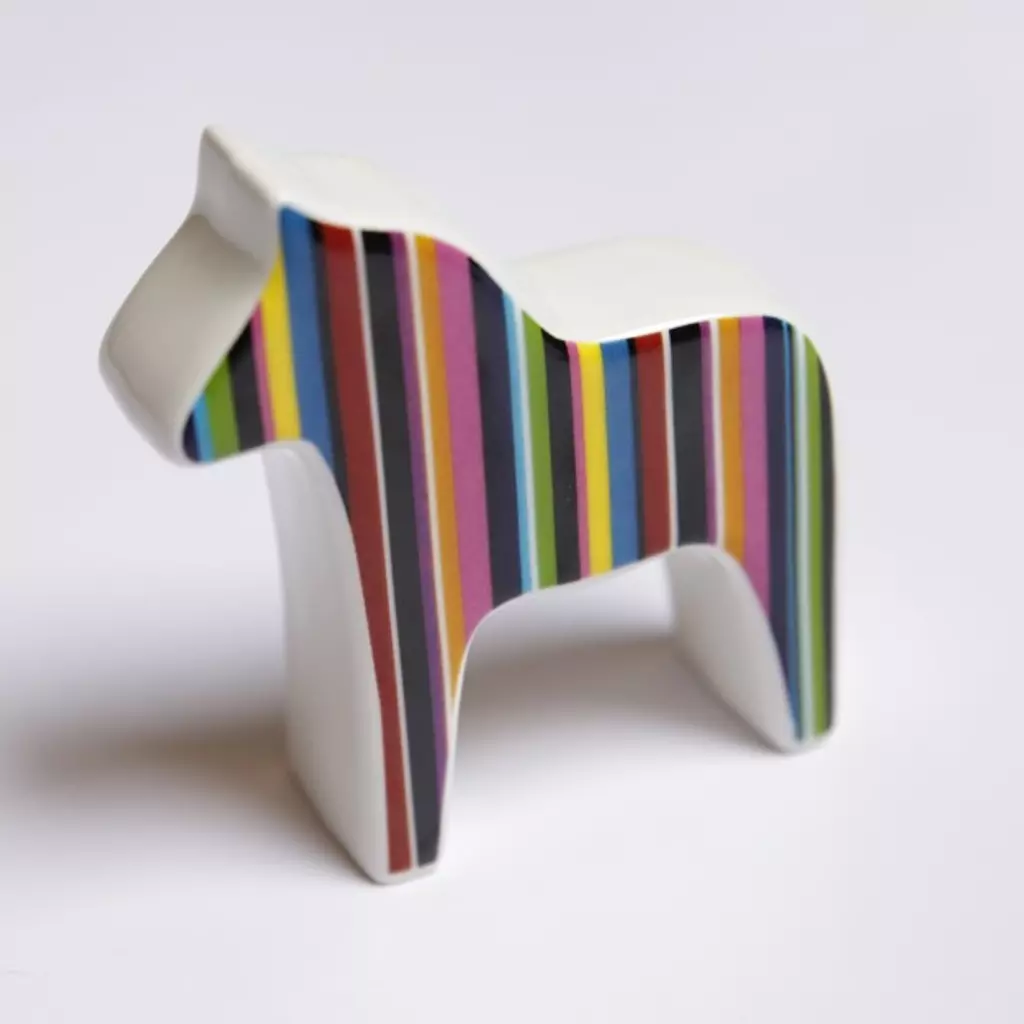 Den ultra moderna dalahästen är här. Med lodräta ränder och två olika storlekar kompletterar de varandra och de passar överallt, antingen tillsammans, eller var för sig. Varför inte ge bort en? Den kommer i en elegant presentförpackning. Material: Fajansporslin med 8-9% porositet som bränns i ca 1050 grader Tillverkning: Tallin i Estland. Läs gärna mer om AnnaViktoria nedan