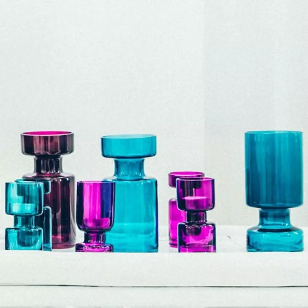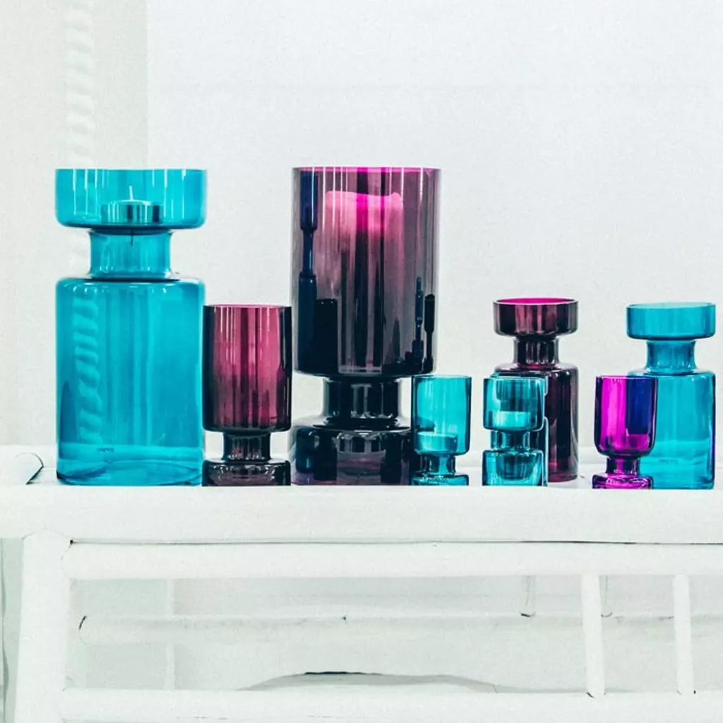 Piffa till hemma med en snygg och funktionell ljusstake som med fördel kan användas som vas. De finns i två olika storlekar och i fyra olika färger att välja, mixa och matcha med. Mått: Mått: 31cm hög / 15cm i diameter Material: Munblåst glas med färgbeläggning Skötselråd: Tål att diskas för hand eller torkas av med fuktig trasa