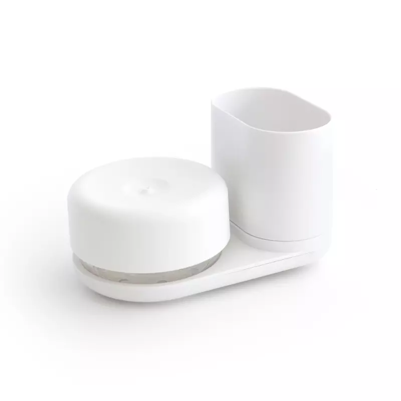 • Håller rent och snyggt på diskbänken. Överflödigt vatten fångas upp av dold bricka. Dräneringshål på sidan förenklar tömning av överflödigt vatten