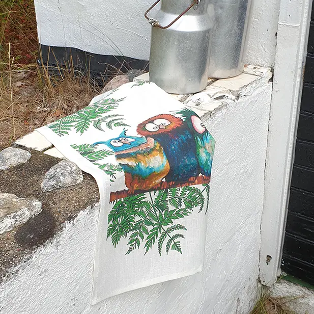 Linnehandduken Ugglorna är en förtrollande hyllning till visdom och naturens skönhet! Detta gåvoset, med det unika motivet av ugglor i olika färger och uttryck, är skapat av den talangfulla Pia Bergvall Lundén. Med sina detaljrika mönster och charmiga karaktärer sprider det en känsla av lugn och mystik. Handduken är tillverkad av högkvalitativt linne, vilket ger en vacker struktur och gör den både slitstark och absorberande. I detta set ingår även en matchande disktrasa, perfekt för att hålla köket skinande rent medan du njuter av naturens under. Ge ditt kök en stilfull och konstnärlig touch med detta gåvoset, en perfekt present för uggleälskare och designentusiaster!