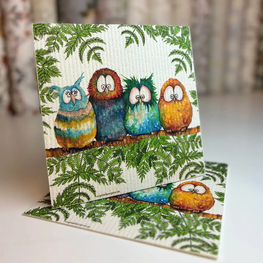 Gåvoset kökshandduk och disktrasa – Ugglorna