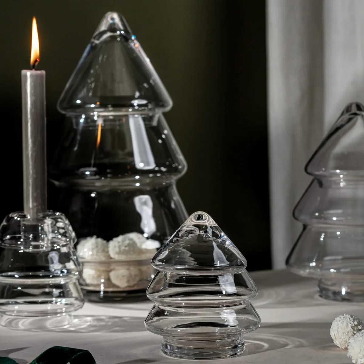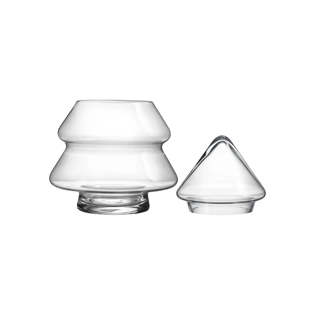 Denna eleganta glasburk från Muurla är formad som en julgran och tillverkad i klart glas, vilket ger en unik och festlig touch till ditt hem. Burken kommer med ett matchande lock och är perfekt för att förvara julgodis, kakor eller andra små skatter under högtiden. det genomskinliga glaset, gör burken både praktisk och dekorativ – en perfekt juldekoration som sprider stämning och glädje.