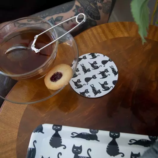 Glasunderlägg Kattfamilj – 4 pcs