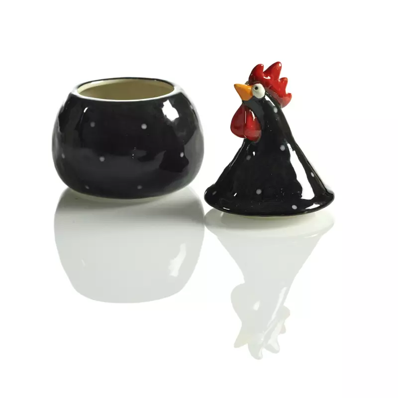 Pynta hemmet med denna fina höna från Nääsgränsgården! Handmålad blank, vit skål med prickig design och ett roligt lock i form av hönans överkropp. Perfekt att servera påskgodiset eller andra godsaker i! Denna skål finns i både vitt och svart. Mått: 15 cm hög Volym: 30 cl Färg: Svart med små vita prickar Material: Porslin Läs gärna mer om Nääsgränsgården nedan