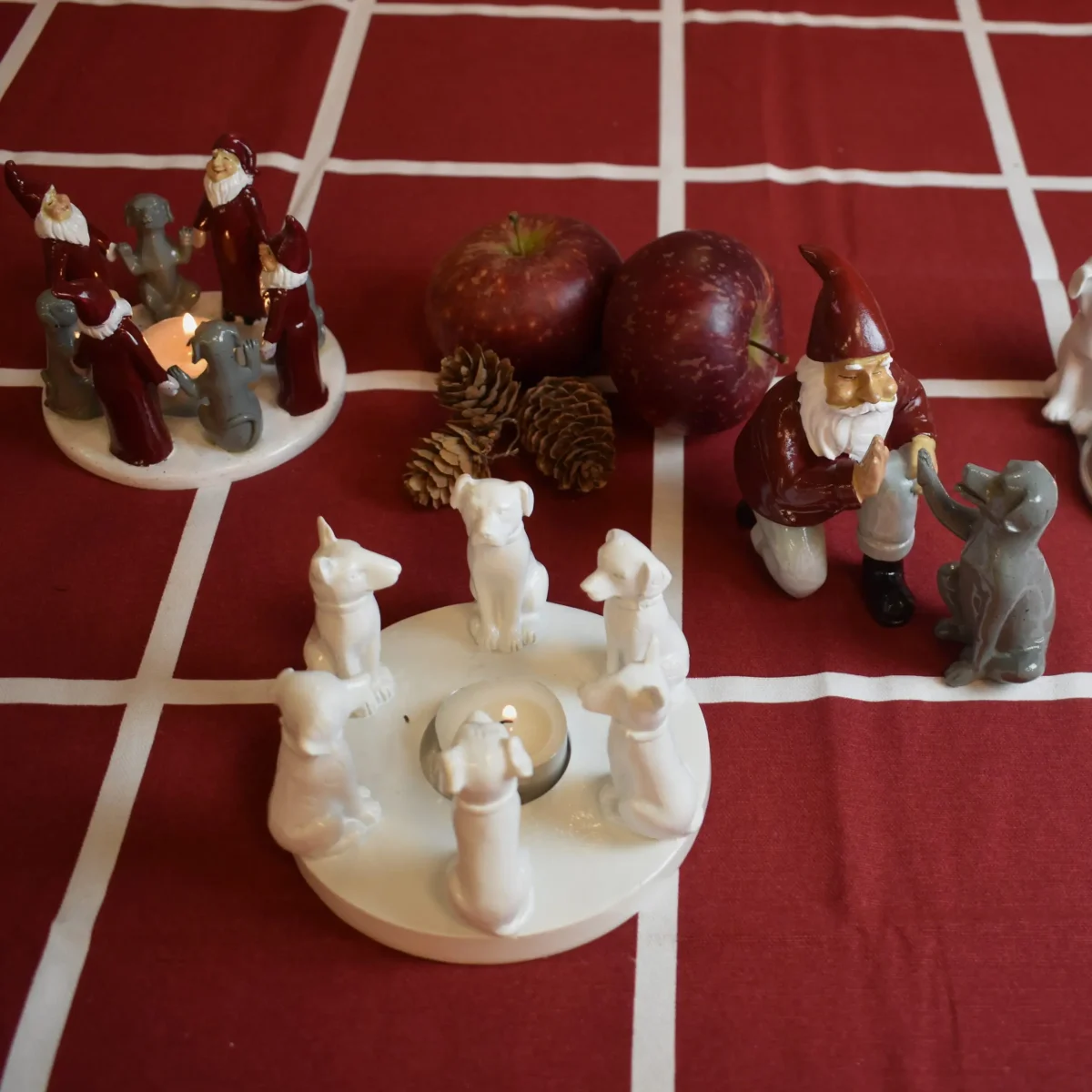 Hunden, människans bästa vän, en självklarhet bland julpyntet. Sex hundar i keramik som omringar en värmeljushållare. Denna vackra ljuslyktan kan stå kvar efter jul och stå året runt. Höjd: 9 cm Läs gärna mer om Harvesttime nedan…