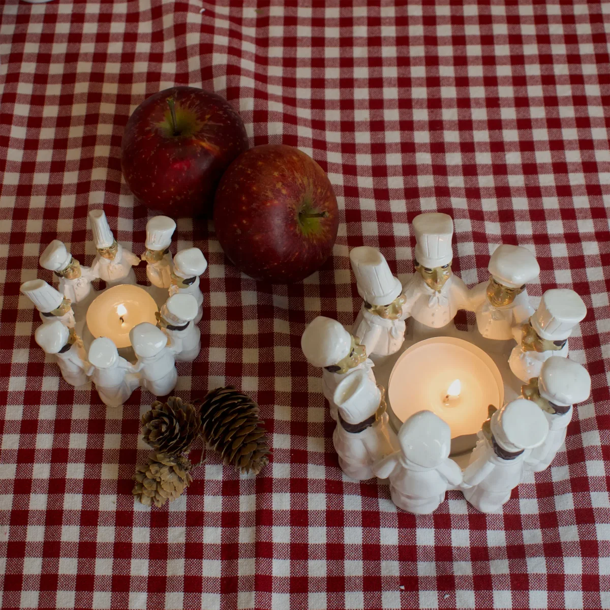 Det finns mycket att göra när man arbetar som kock. En av de största favoriterna är under juletid med där julbordet är en höjdpunkt. Ljuslyktan passar bra att ha i köket under hela året och är egentligen inte en juldekoration. Det är nio kockar tillsammans runt ett värmeljus. Höjd: 10*9,50*7 cm Material: Polyresin Skötsel: Rengöres med vatten och en mjuk trasa Läs gärna mer om Harvesttime nedan.