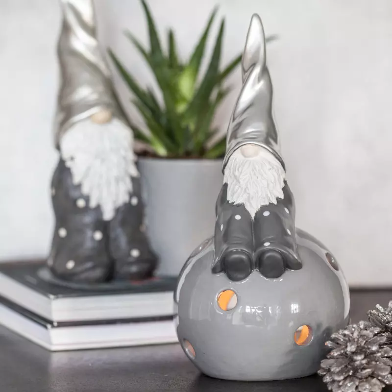 Från början var tomten en liten figur som bodde på gårdar, bistod husfolket med djuren, men ville inte visa sig. Ofta beskrev man tomten som en liten sur och butter figur klädd i grått, luva på huvudet och ett stort skägg. Denna tomtefigur, Fritte, är precis en sådan liten figur. Otroligt charmig figur med metallisk luva och stort skägg. Den här ljuslyktan med Tomten Fritte och sin skruvade luva är något alldeles extra!