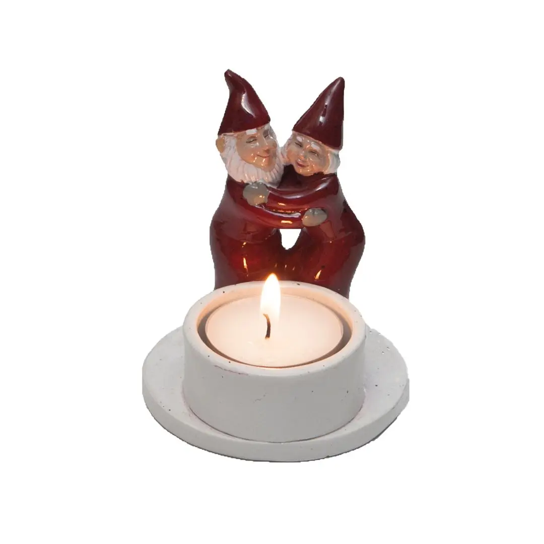 Julen blir mysig tillsammans. Denna ljuslykta för ett värmeljus har två tomtar som står och kramas. De två tomtarna håller om varandra och värmer sig på ljuset. De har båda vitt hår och är klädda i rött. Denna ljuslykta förmedlar verkligen julens mysiga stämning och passar jättebra att ha både på matbordet och soffbordet.