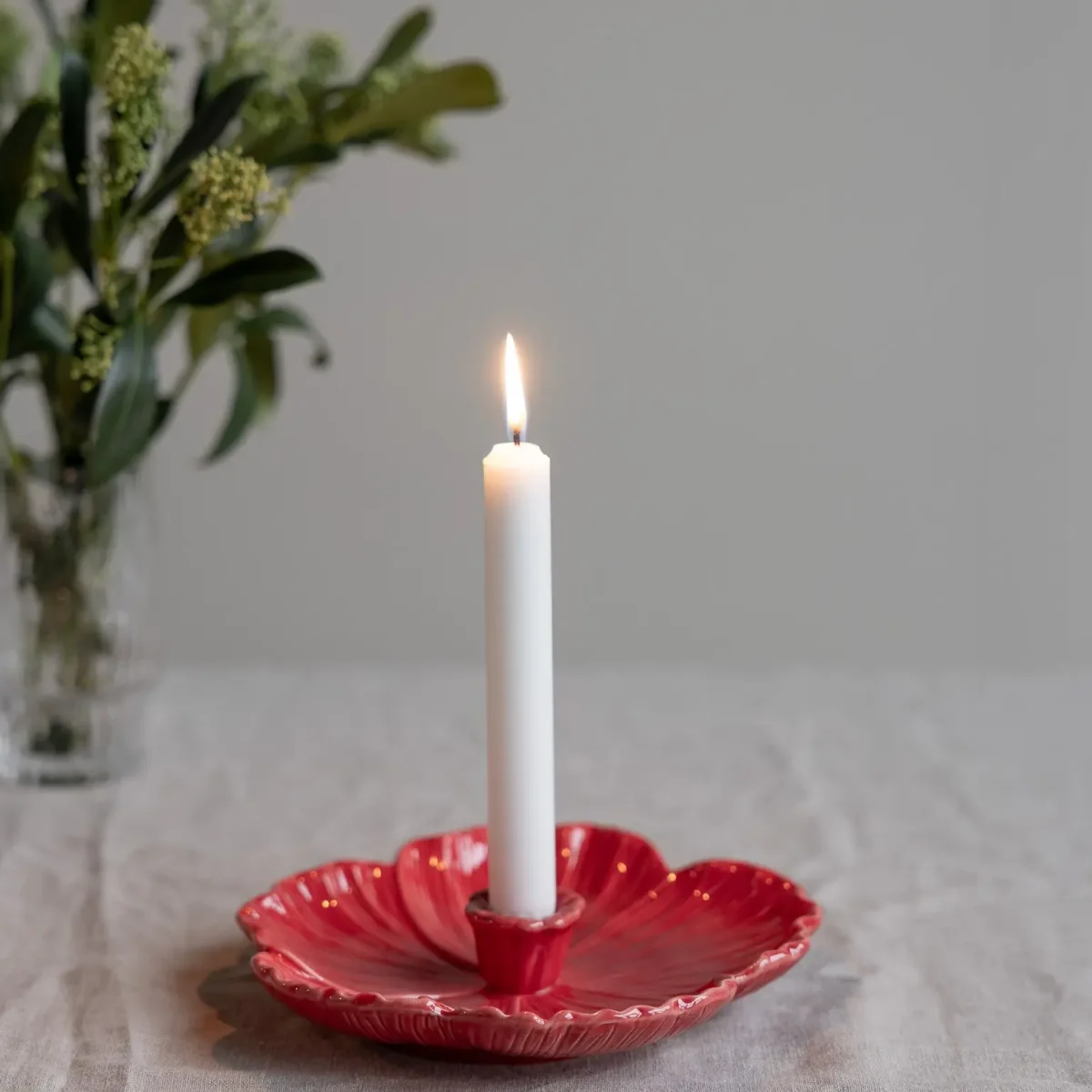 Ljusstake i keramik formad som en blomma, vacker kombination av design och funktion. Finns i två storlekar och passar lika bra som en stilfull inredningsdetalj som för mysig belysning. Placera den på matbordet för en stämningsfull dukning eller bredvid sängen, där den även kan användas för att förvara smycken.