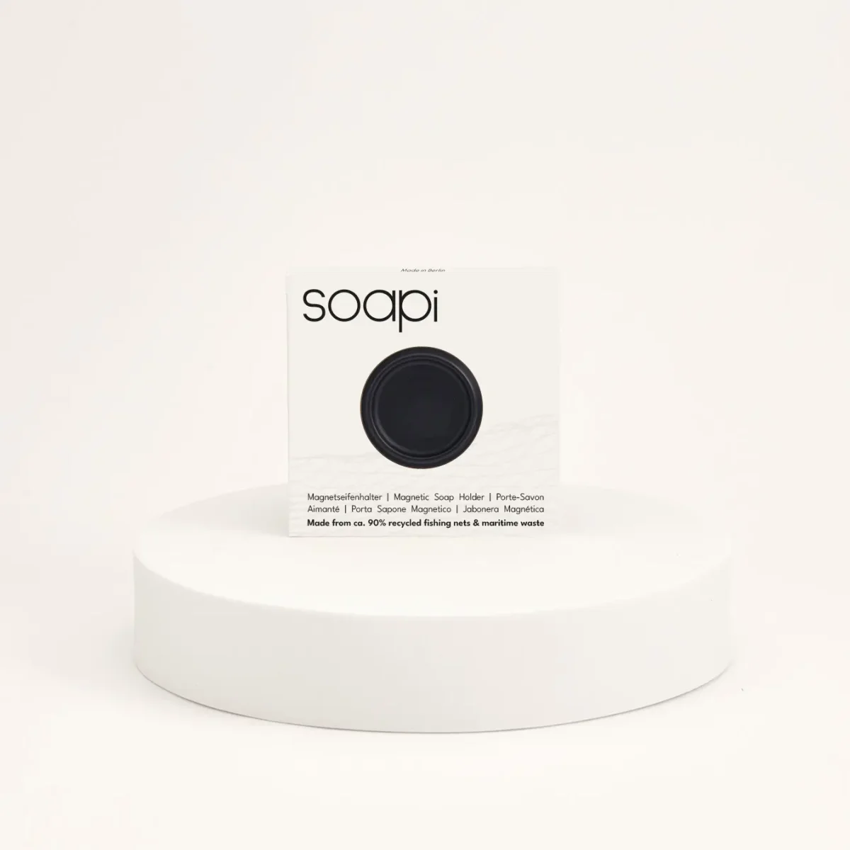 Denna tvålhållare från Soapi erbjuder en elegant design och smart funktion. Du fäster hållaren på väggen med hjälp av klisterfunktion. Tryck fast en kapsyl i tvålen och placera den enkelt på hållaren med hjälp av en magnetfunktion både smidigt och hygieniskt. Perfekt för att hålla tvålen torr och badrummet snyggt. Ett stilfullt och praktiskt tillskott till ditt badrum! Mått: 5 cm Material: Återvunnen plast Färg: Svart Läs mer om Soapi nedan..