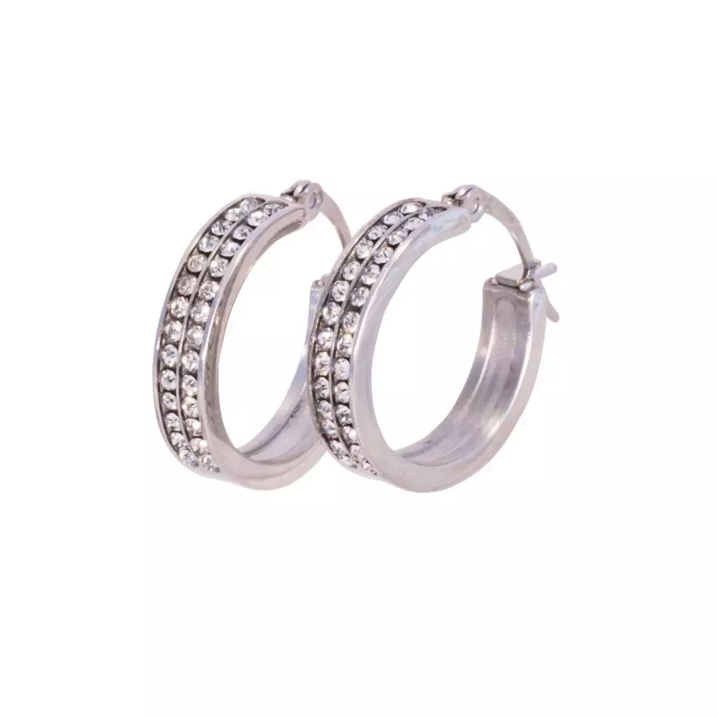 Aylin – Öronringar i Stål dekorerad med dubbla rader CZ-stenar