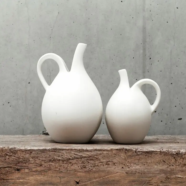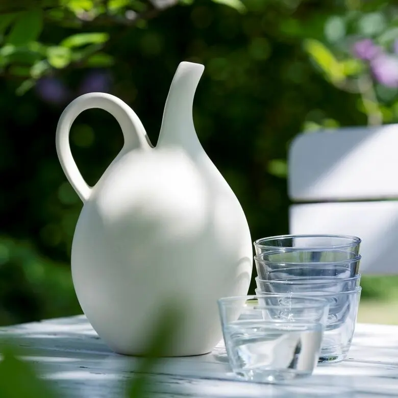 Förhöj din inredning med en touch av elegans genom denna dekorativa karaff, en mångsidig konstnärlig skapelse av designern Eva Stoehr_Nielsen från Saxbo. Tillverkad i stengods, ger denna karaff inte bara ett känsligt och naturligt uttryck utan erbjuder också flexibilitet i användningen. Den tjänar inte bara som en stilfull karaff för servering av drycker utan kan också omvandlas till en charmig vas för att pryda ditt hem med blommor.