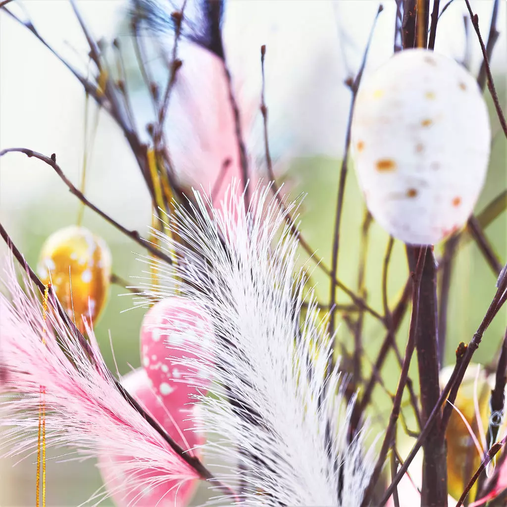 Påskris med fjädrar