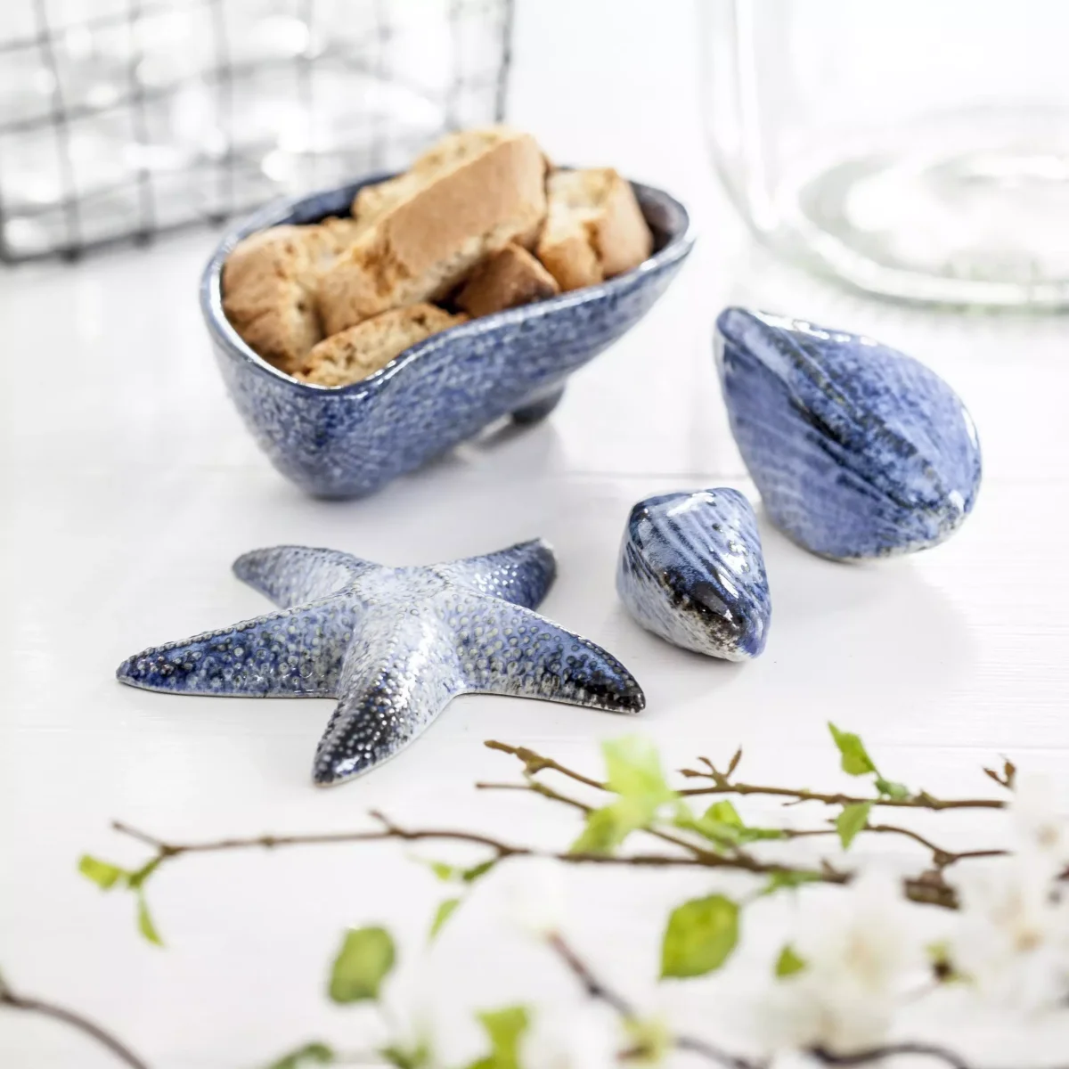 Detta fantastiska set med salt- och pepparkar i stengods är designat för att passa ditt hem under hela året, oavsett årstid. Musslorna har elegant och fin design med skiftande havsblåa toner och nyanser av djup, inspiration av havets alla vackra färger. Dessa produkterna är handgjorda och det kan finnas mindre variationer mellan bild och produkt. Varje produkt är alltså unik.