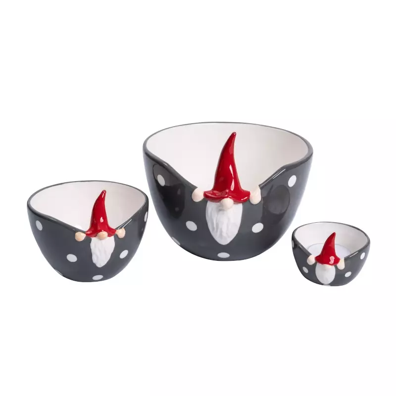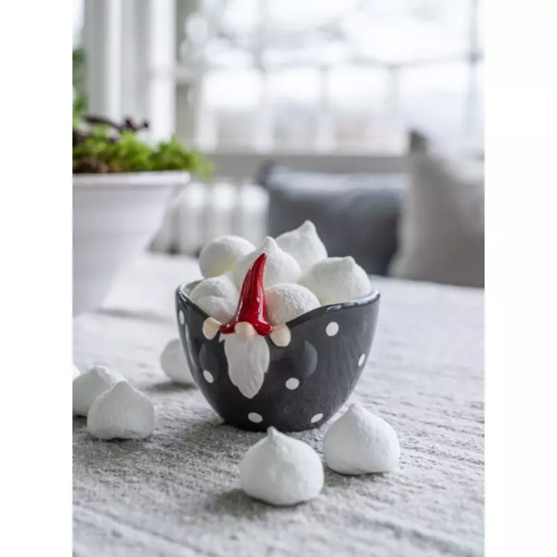 Skål med tomte som tittar ut.