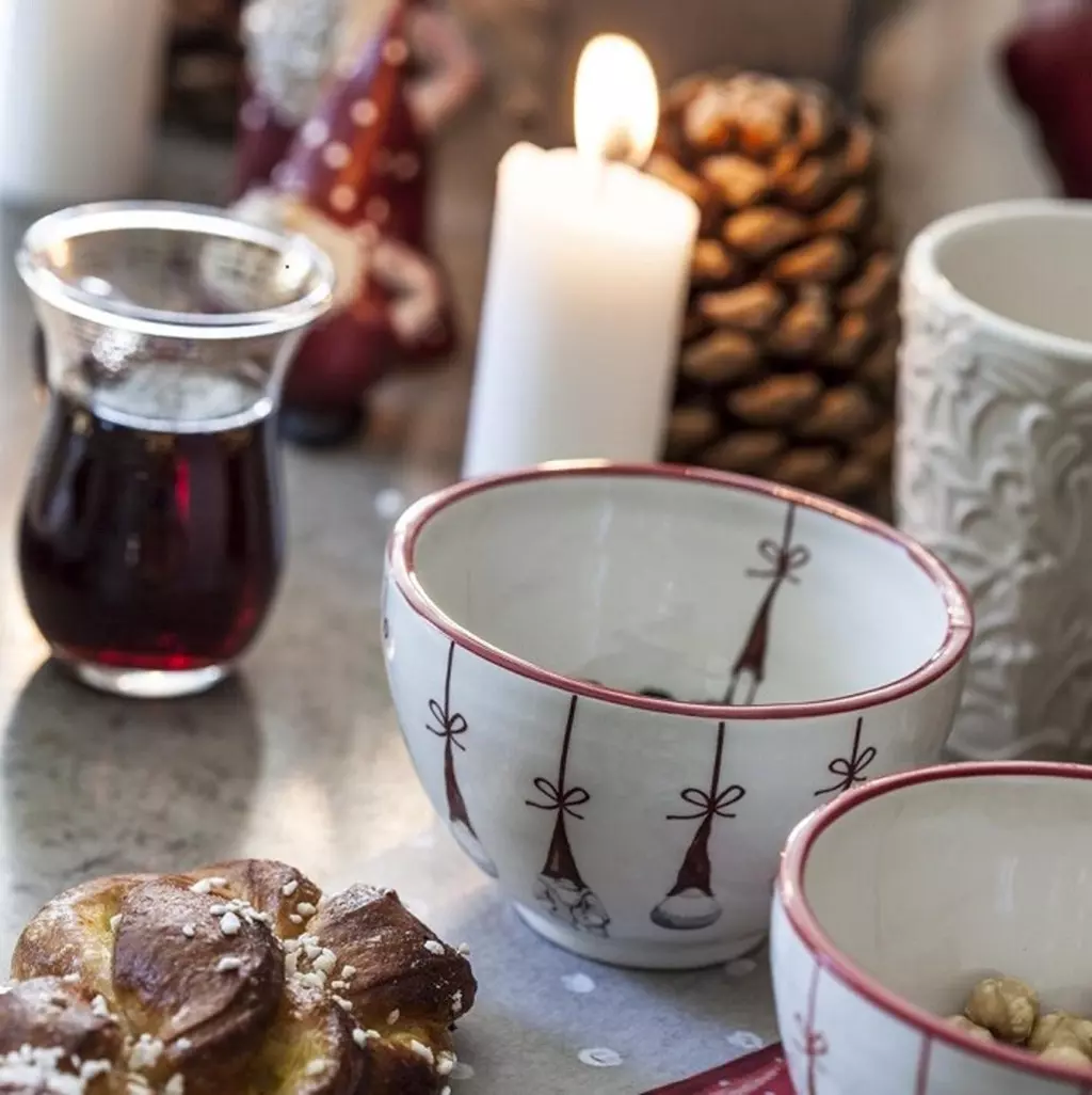 Med denna söta skål med tomtar på kan även porslinet få sig en julkänsla. Passar perfekt till glöggkvällen för att ha nötter, russin eller mandlar i, eller varför inte det hemmagjorda julgodiset?