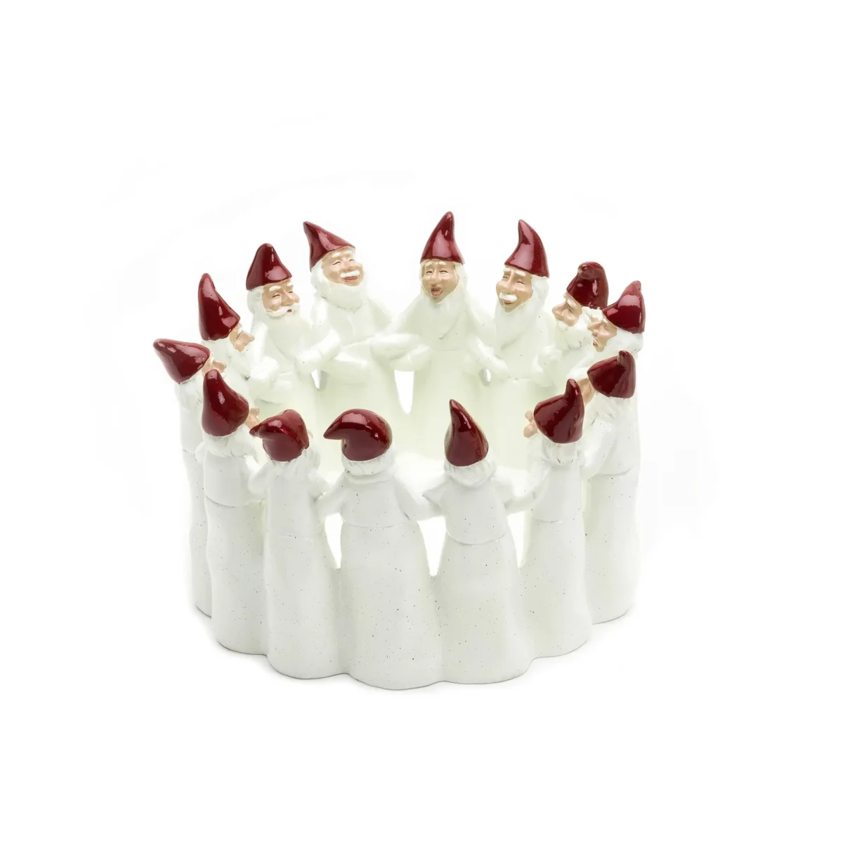 Produkterna från Harvesttime är mysiga och vackra, men tittar man lite närmare på dem är de väldigt roliga. Tomtar som bildar ett band framför adventsljusen, med snaps och glöggflaskor i fickan bland annat.