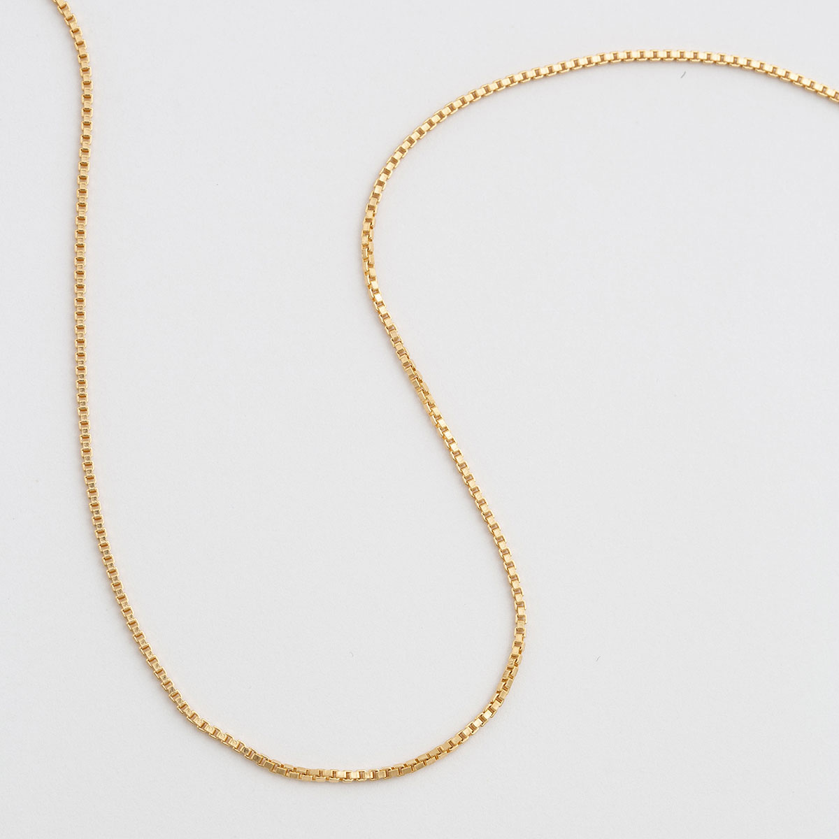Kort boxkedja i sterling silver pläterad med 18K guld. Kombinera med beloved bokstäver och berlocker för att skapa ditt eget personliga halsband.