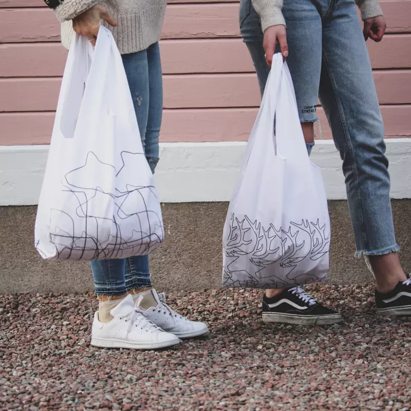 Tygpåsen är anpassad för att bära hem mat och rymmer 25 liter och är kvalitetstestad för att hålla för 14 kg. Den är lätt att vika ihop och kan maskintvättas i 40 grader. En tygpåse från Reuse Remade hjälper till att spara 1500 l färskvatten, 50 g kemikaler, 20 cl råolja och 2,6 kg växthusgaser i jämförelse med en nytillverkad tygpåse.