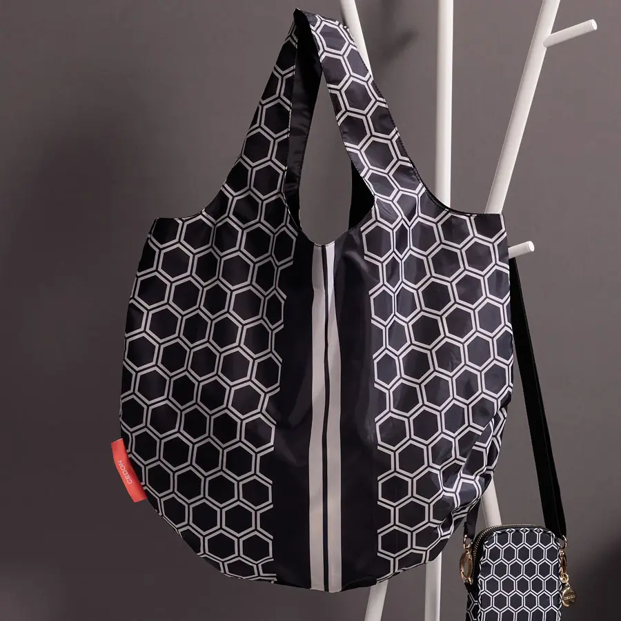 Mångsidig shoppingväska som kommer med en praktisk, separat liten väska (13 x 9 cm) för extra förvaring. Denna shoppingväska är tillverkad av högkvalitativt polyestertyg som är både vattenavvisande och lätt att tvätta, vilket gör den idealisk för alla dina inköp och äventyr. Den inre fickan, som mäter 14 x 11,5 cm, erbjuder ytterligare förvaring för småsaker, så att du alltid har ordning på dina viktiga tillhörigheter. Med en generös storlek på 48,5 x 42 cm och en lätt vikt på endast 45 g kan väskan enkelt bäras med dig, och den klarar av att bära upp till 20 kg.