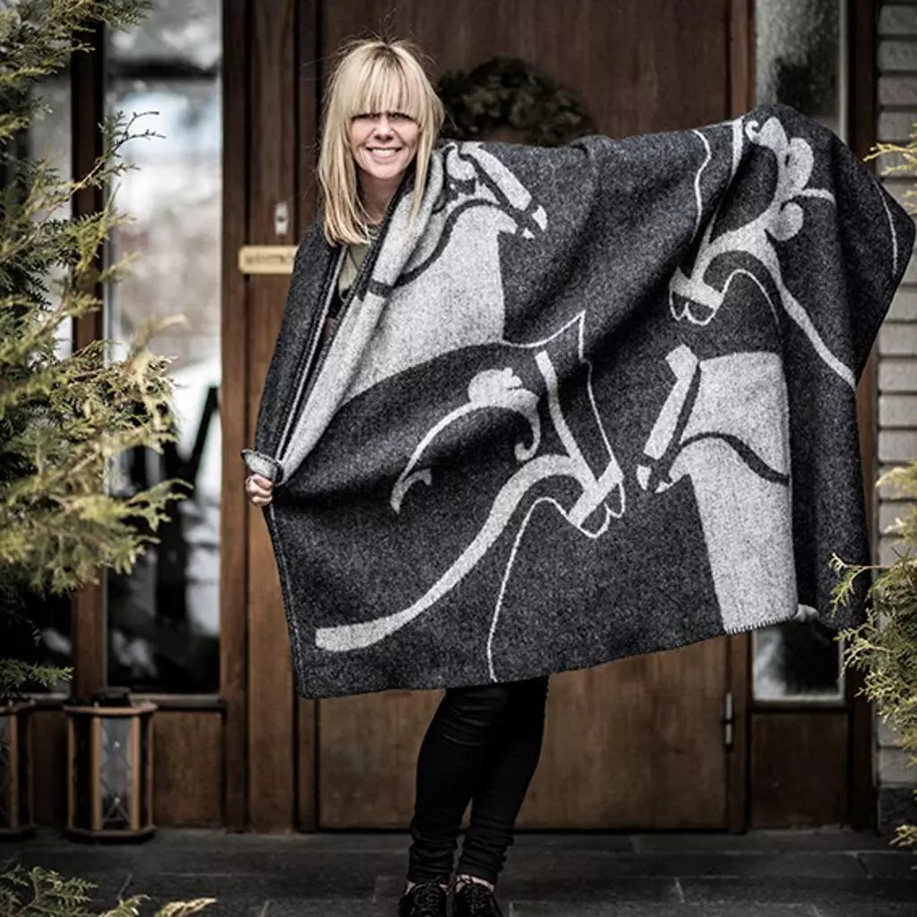 Underbar filt i 100% ekologisk lammull. Vad kan passa bättre än att vira en enkel och stilren filt kring sig och krypa upp med en god kopp té i soffan en ruggig höstkväll? Vikingmönstret är hämtat från våra skandinaviska mönstertraditioner och leker med mörkt och ljust för att skapa kontraster men även harmoni. Det ska vara lätt att titta på helt enkelt.