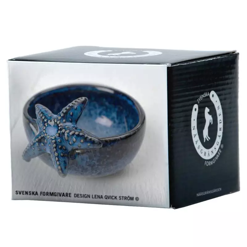 Lena Qvick Ström är en duktig och framgångsrik designer och formgivare från Lidköping. Hon arbetar främst med lera och modellerar allt från grunden. Lena har med Nääsgränsgården tagit fram denna härliga havskollektion.
