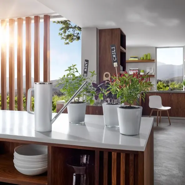Ge din trädgård en touch av elegans med LIMBO vattenkanna från Blomus. Tillverkad i polerat rostfritt stål och klädd i vit plast, kombinerar denna vattenkanna stil med hållbarhet. Med en kapacitet på 1,5 liter är den perfekt för att vattna dina växter medan den blir en vacker inredningsdetalj inomhus när den inte används utomhus. Oavsett om du arbetar i trädgården eller dekorerar ditt hem, är LIMBO en pålitlig och stilfull följeslagare